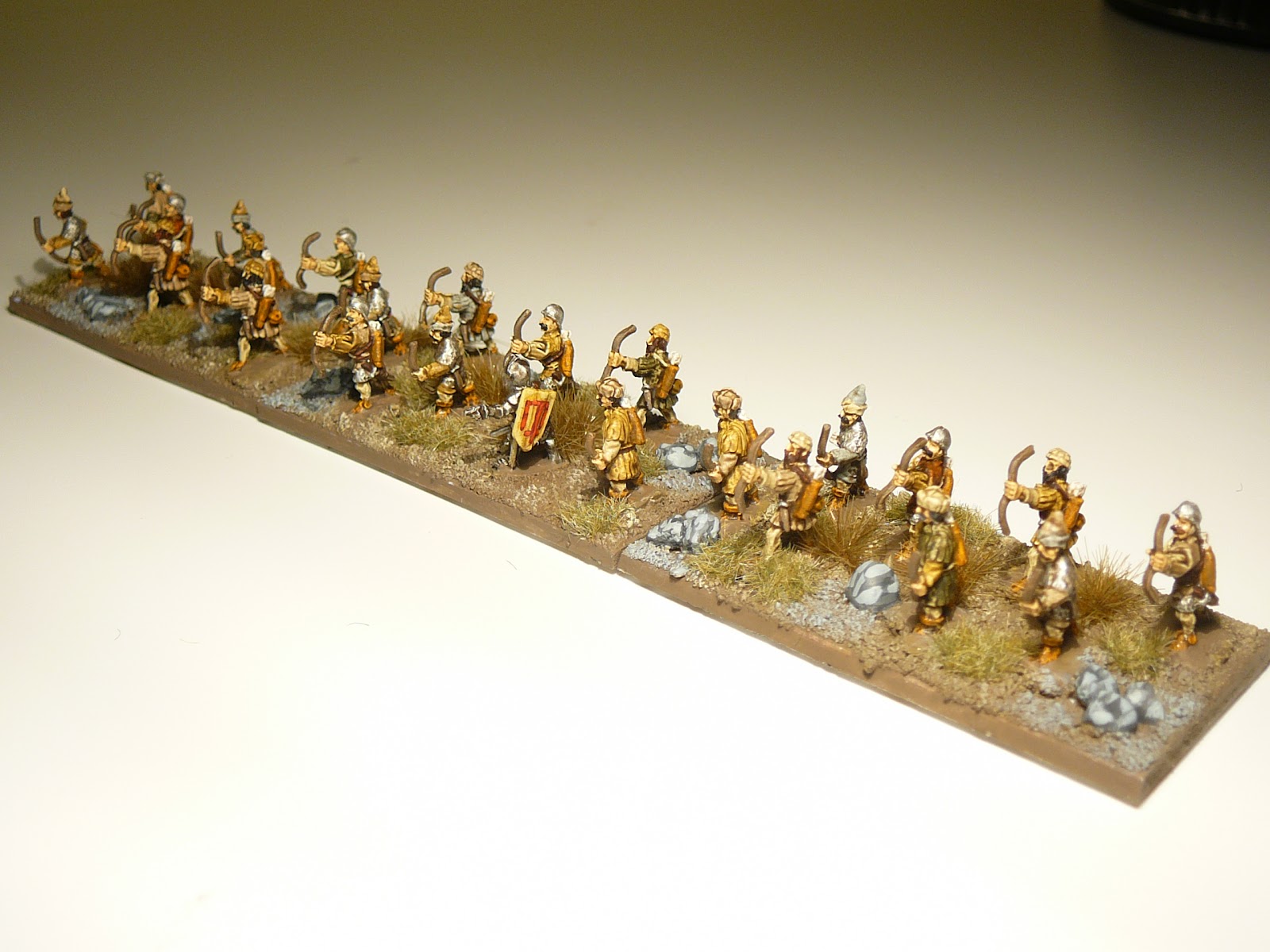 Ponieważ mam spory zapas figurek Kallistry do Europy Wschodniej XV wieku, postanowiłem, zamiast tworzyć kolejną armię do DBA, pomalować coś do Basic Impetusa. Zdecydowałem zrobić Wołochów pod dowództwem Włada Palownika, pod jego przywództwem Wołosi z powodzeniem opierali się najazdom Turków ottomańskich. Ponieważ figurki są w skali 10mm, autorzy systemu proponują używanie mniejszych podstawek niż w przypadku 15mm. Fronty powinny mieć szerokość 6cm, zaś głębokość, w zależności od rodzaju wojsk; 4, 3 i 2cm. Poniżej przedstawiam pierwsze 3 podstawki wołoskich łuczników. Kolejne 3 z wołoską jazdą czekają na wykończenie i niebawem ukażą się na blogu.